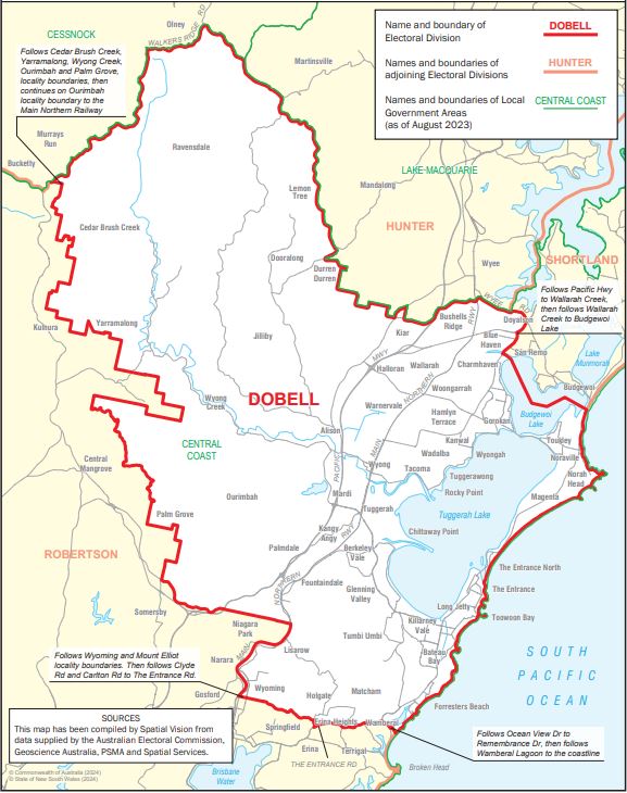 The electorate of Dobell covers northern parts of the Central Coast.